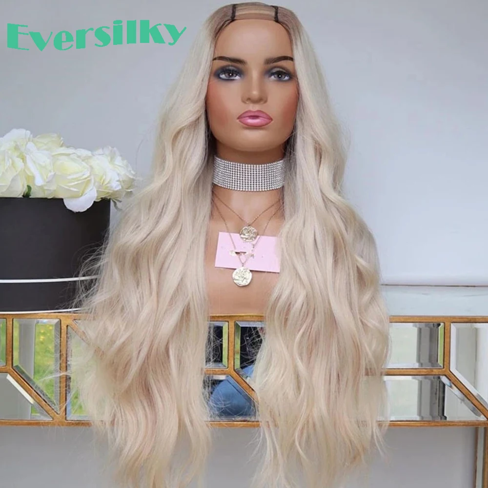 Glueless волнистые 2x4 средние u-образные парики 100% человеческие волосы 100% Необработанные Омбре платиновый блонд 30 дюймов полный машинный парик