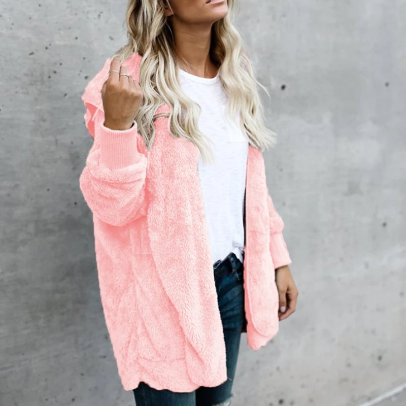 Женская Двухсторонняя куртка средней длины, Повседневная однотонная куртка из искусственного меха, Осень-зима