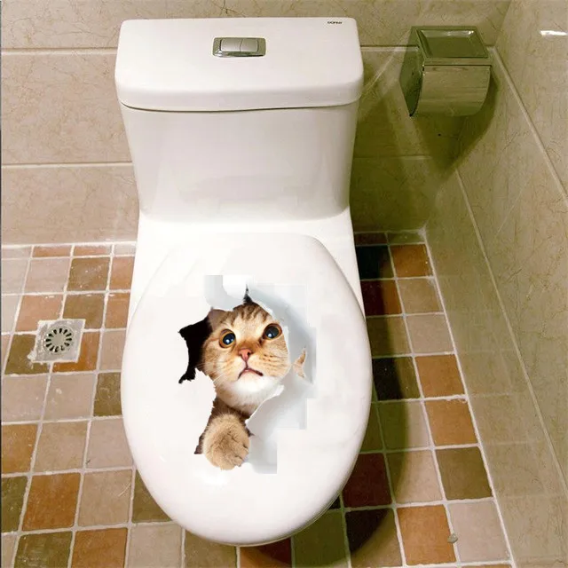 3D Наклейка на стену в виде кошки, собаки, разбитого переключателя, декоративные наклейки для ванной, туалета, забавные животные, Декор, плакат из ПВХ, роспись, искусство