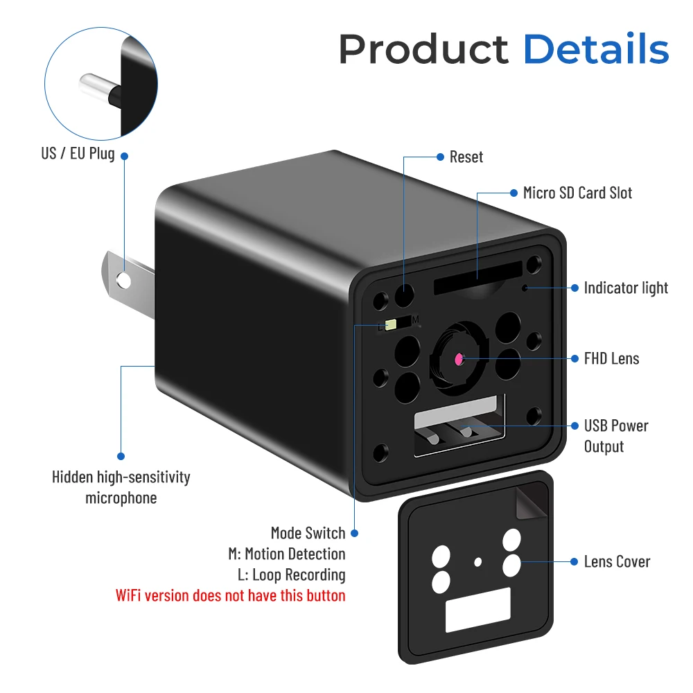 Мини wifi камера 1080P Вилка USB зарядное устройство видеокамера Беспроводная портативная камера безопасности адаптер питания мини видеокамера