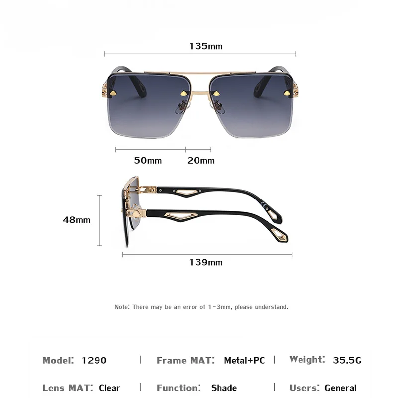 2021 Модные солнцезащитные очки без оправы для мужчин винтажные ква...