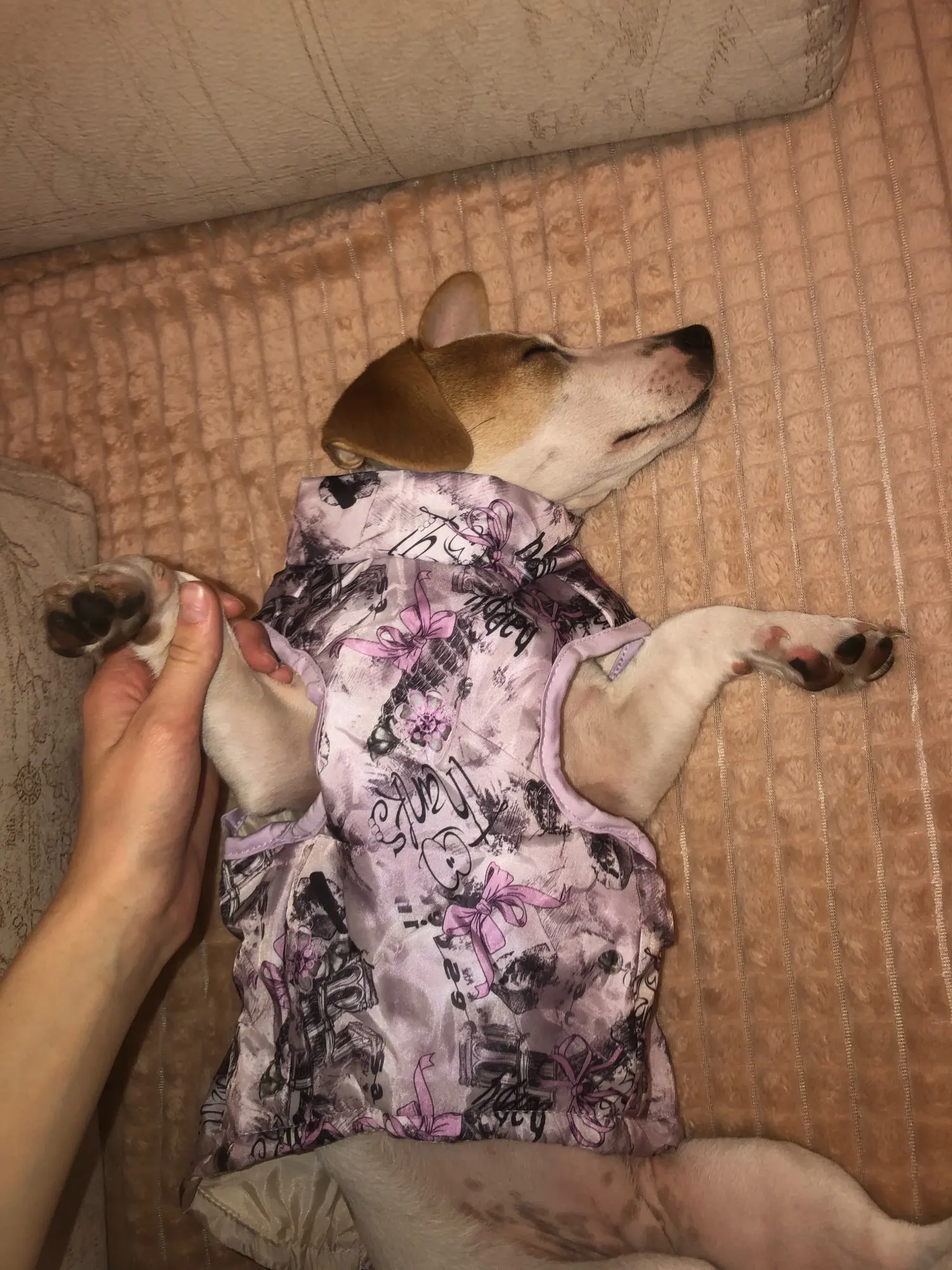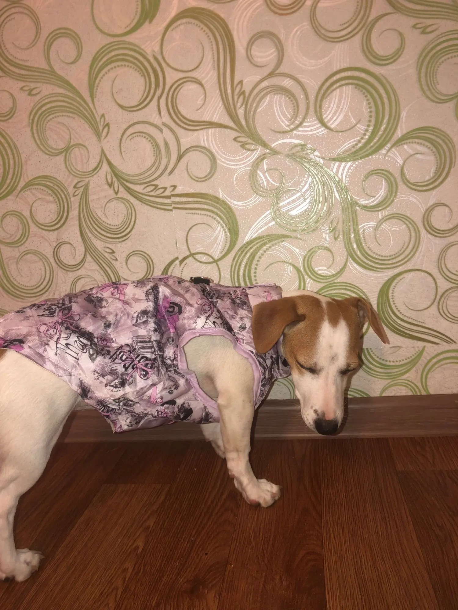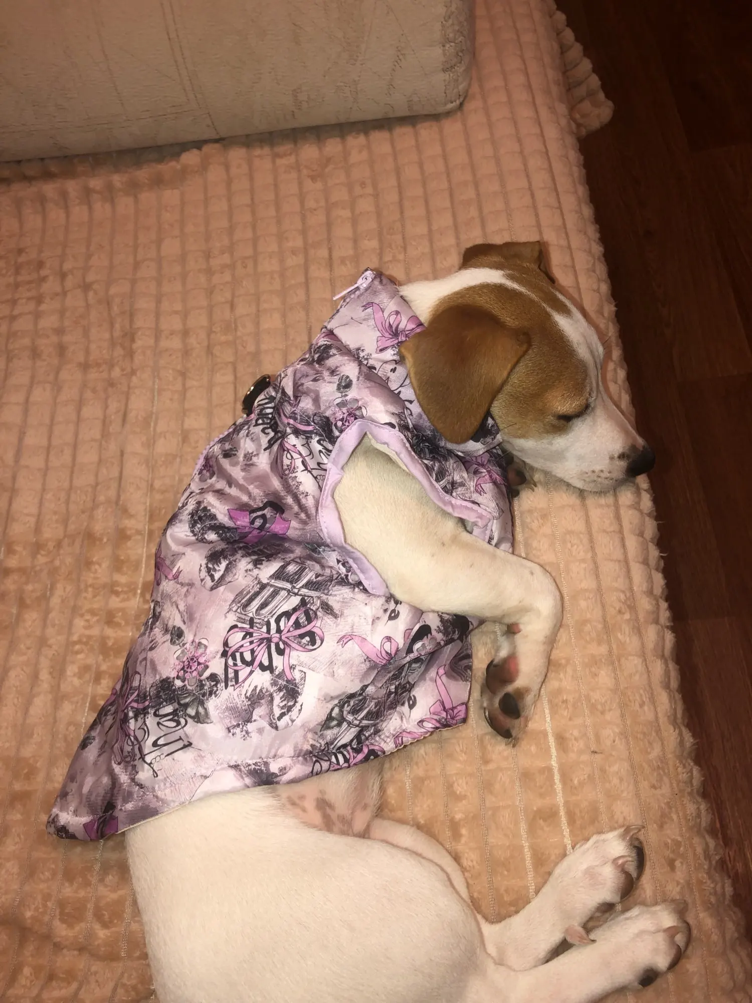 вот такую вот жилетку заказали на джек рассела терьера. ей 6 месяцев, она довольна маленькая, но взяли размер L. большая, но это намного лучше, так как собаке удобнее. расцветка тоже красивая. эту жилетку одевать только в дождливую погоду, зимой будет холодно. есть одно но, очень долго шло. ну а так все супер, заказывайте