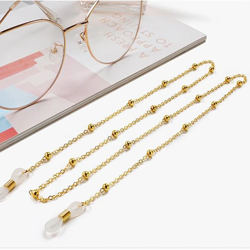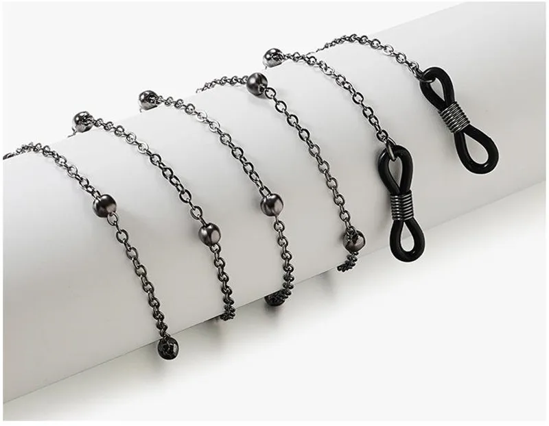 Минималистичная цепочка для очков с круглыми бусинами, модная Длинная цепочка для очков черного и золотого цвета, нашейные ремешки, элегантная бижутерия для женщин, подарок