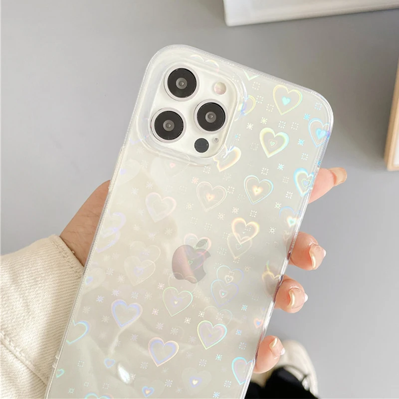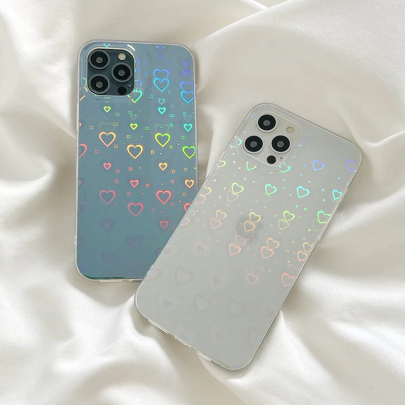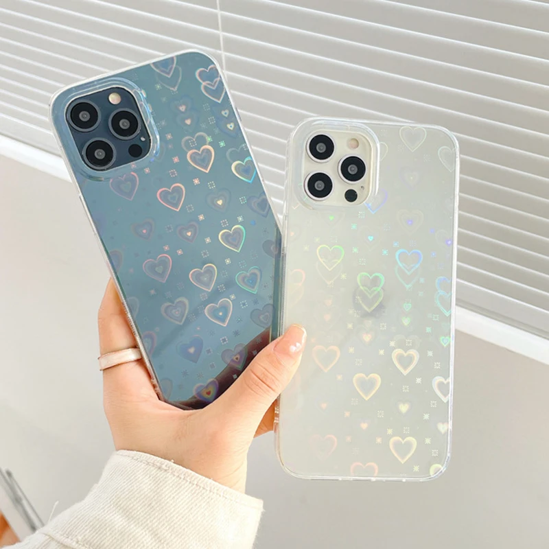 Модный прозрачный чехол для телефона с градиентным лазерным рисунком сердца для iPhone 11 12 Pro Max X XS XR 7 8 Plus SE 2020, противоударный бампер
