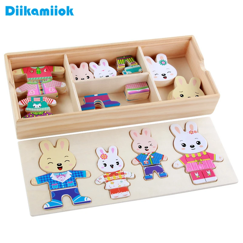 Новый деревянный пазл, Медведь, Кролик, платье, меняющий подходящие пазлы, детская деревянная игрушка, Детские обучающие игрушки для детей