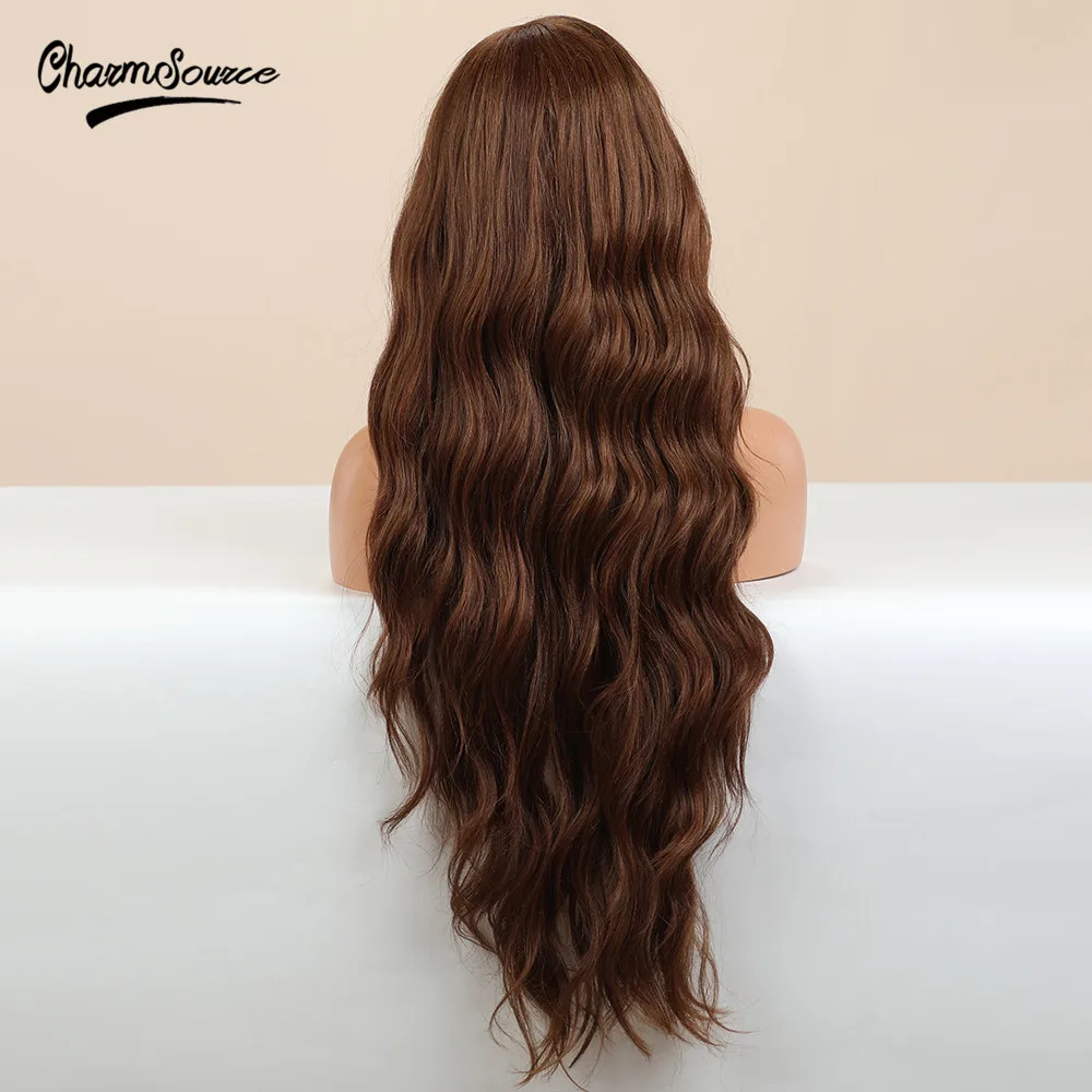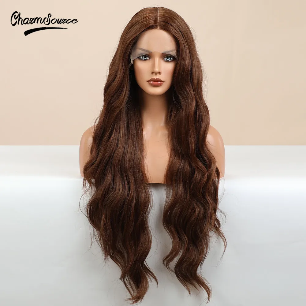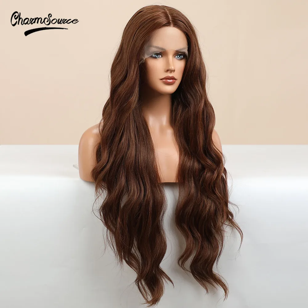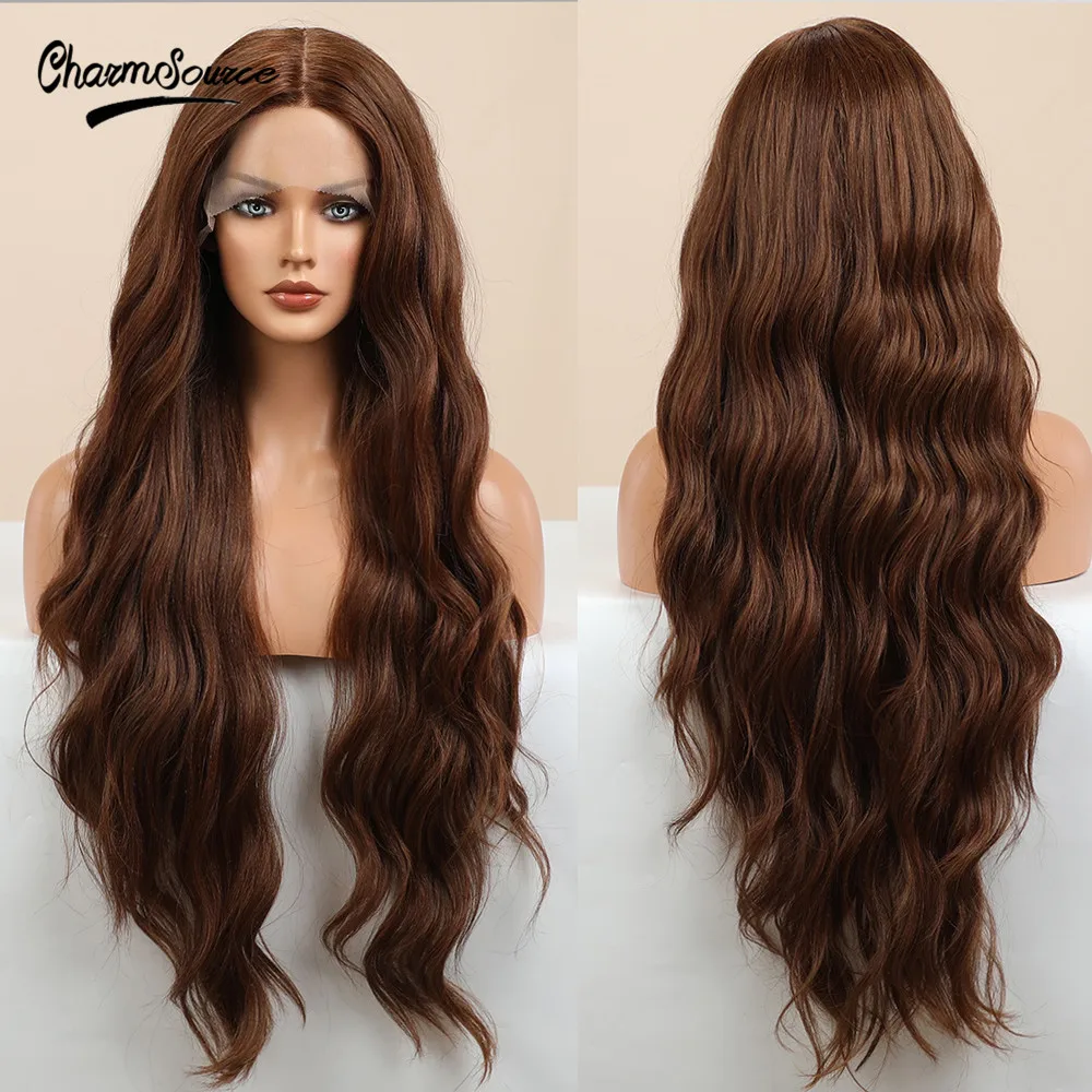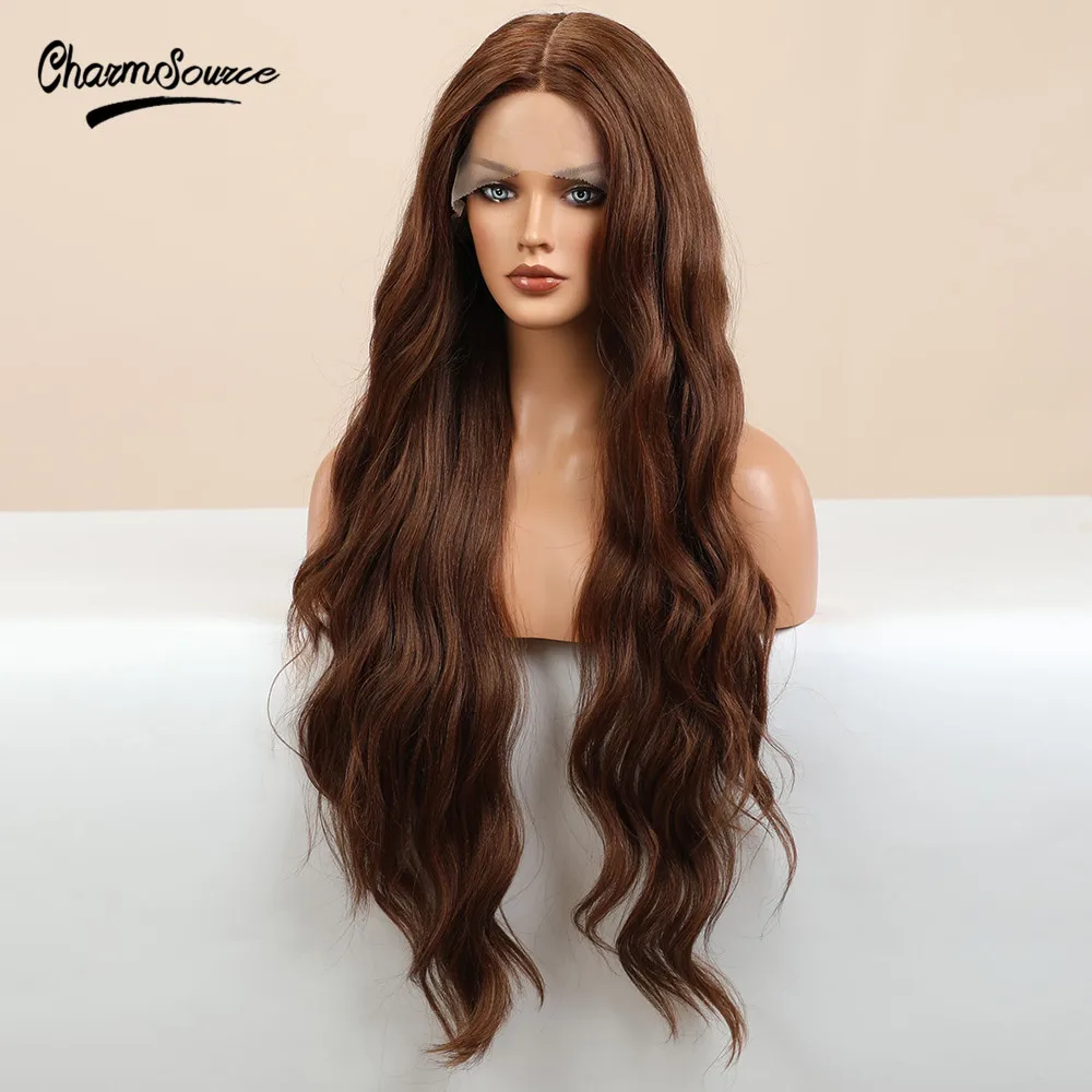 Натуральный волнистый парик CharmSource на передней сетке, Длинные темно-коричневые парики для черных женщин, для ежедневного использования, для вечеринки, синтетические волосы высокой плотности