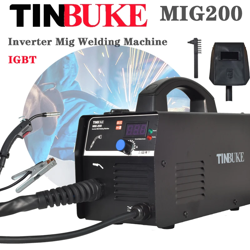 Сварочный аппарат TINBUKE MIG200, домашний безвоздушный газовый экранированный сварочный аппарат, интегрированный аппарат