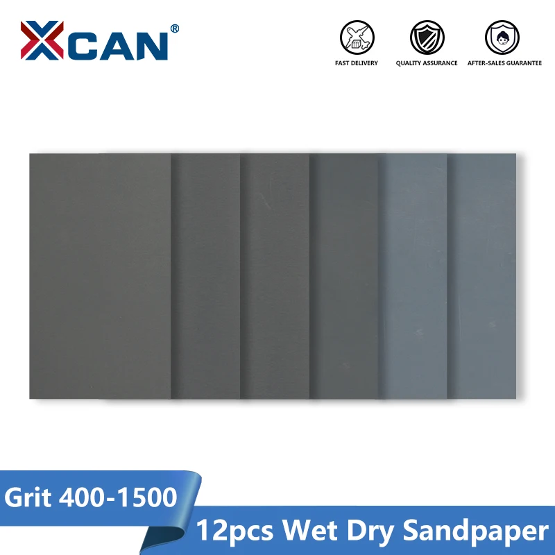Наждачная бумага XCAN, влажная, сухая, 12 шт., зернистость 400-1500, водонепроницаемая, 9x3,6 дюйма, для дерева, металла, абразивный инструмент для полировки, наждачная бумага