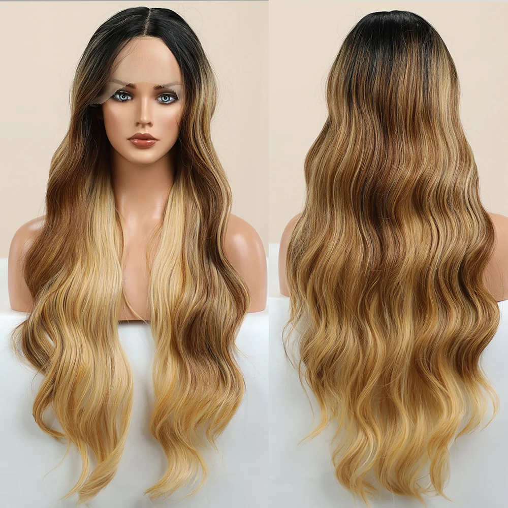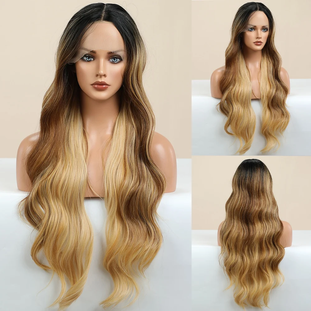 Парик CharmSource, длинный черный блонд, каштановый, натуральный волнистый парик на фронтальной сетке для чернокожих женщин, для ежедневного использования, для вечеринок, синтетические волосы высокой плотности
