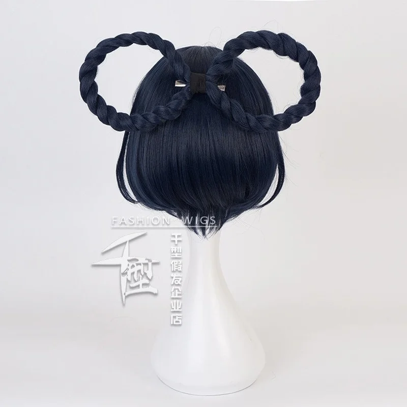 Парик с короткой косичкой Game Genshin Impact Xiangling, темно-сини...