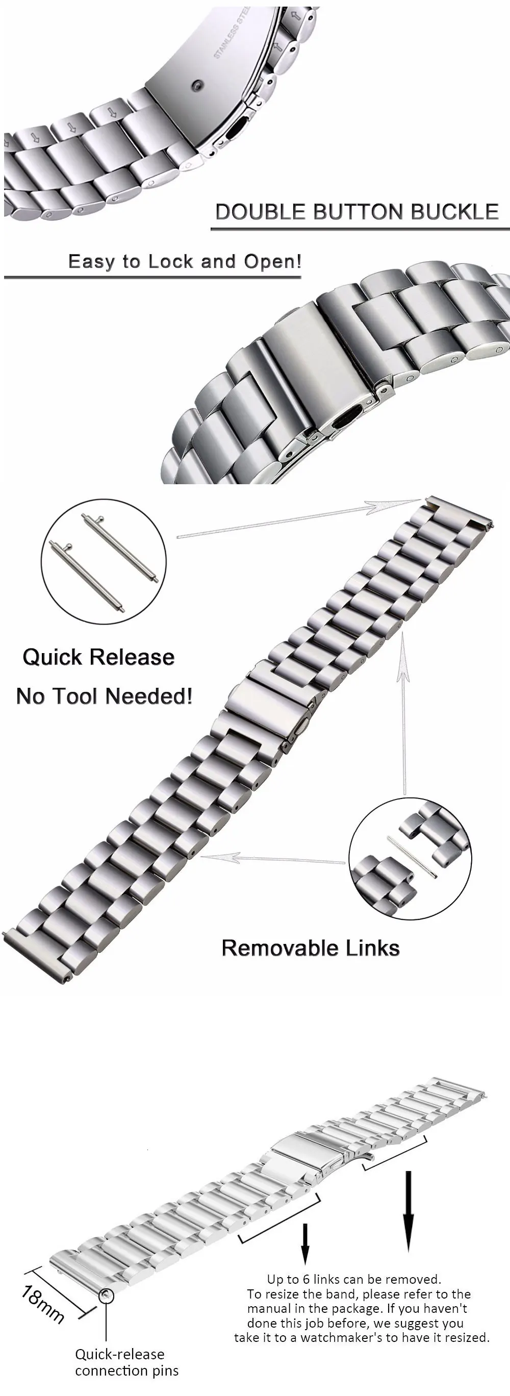 Ремешок из нержавеющей стали для наручных часов, быстросъемный брас...