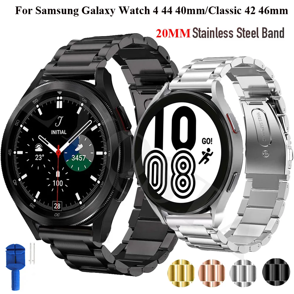 Ремешок 20 мм для Samsung Galaxy Watch 4 44 40 мм, металлический браслет из нержавеющей стали для Galaxy Watch 4 Classic 42 46 мм, браслет Correa