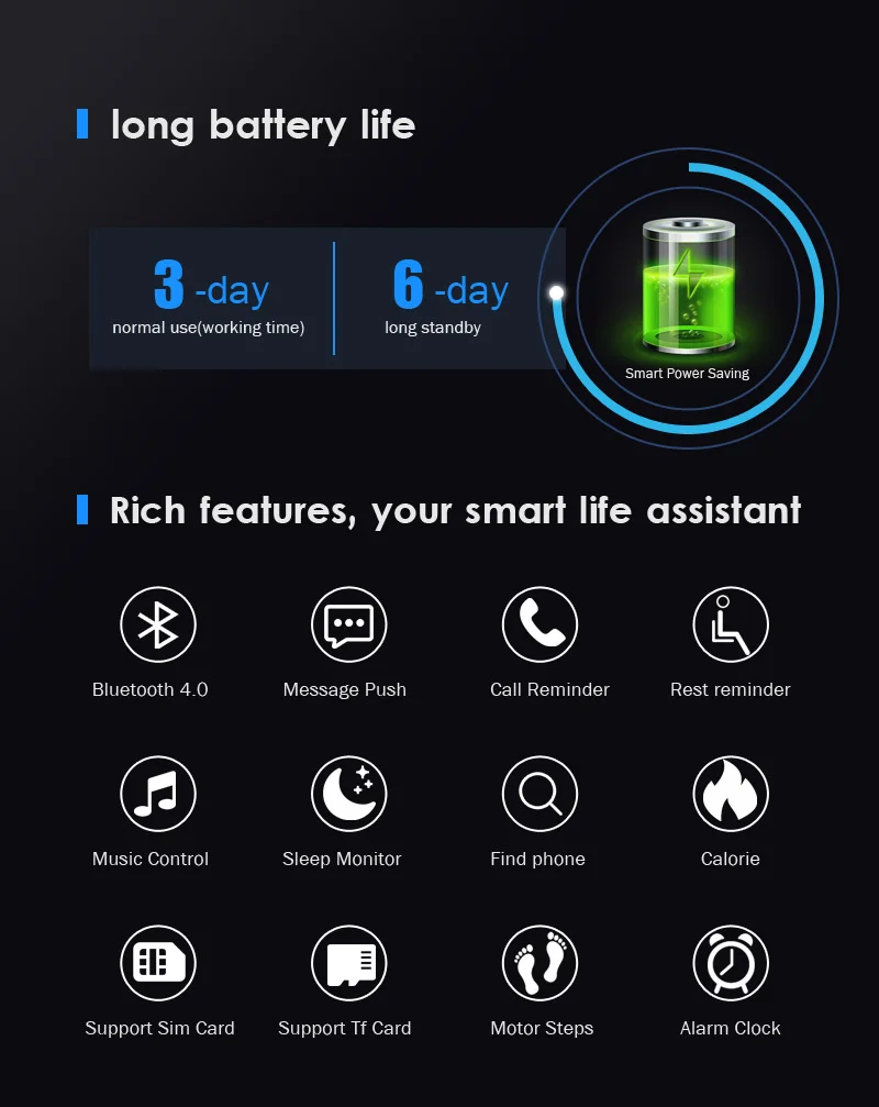 * G-сенсор: Поддержка шагомера, напоминание о сидячем положении, мониторинг сна; Защита от потери; Удаленное фотографирование
