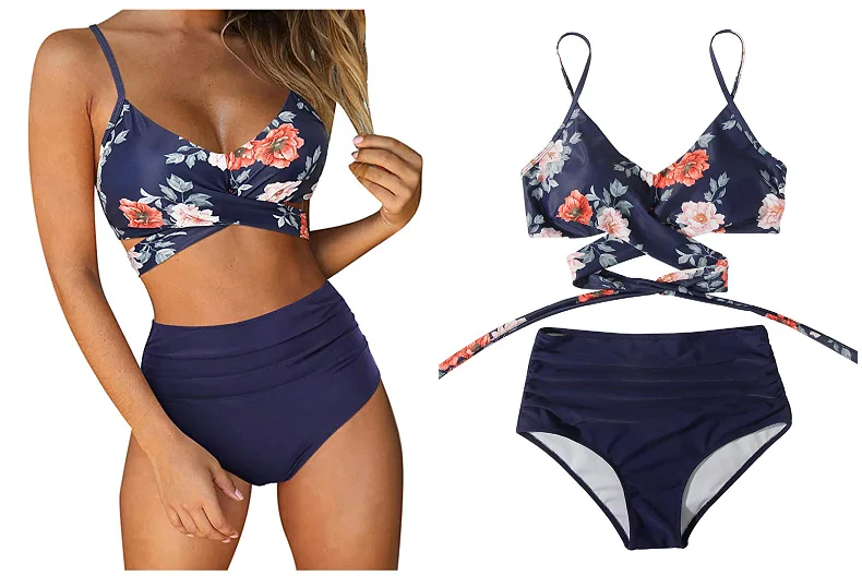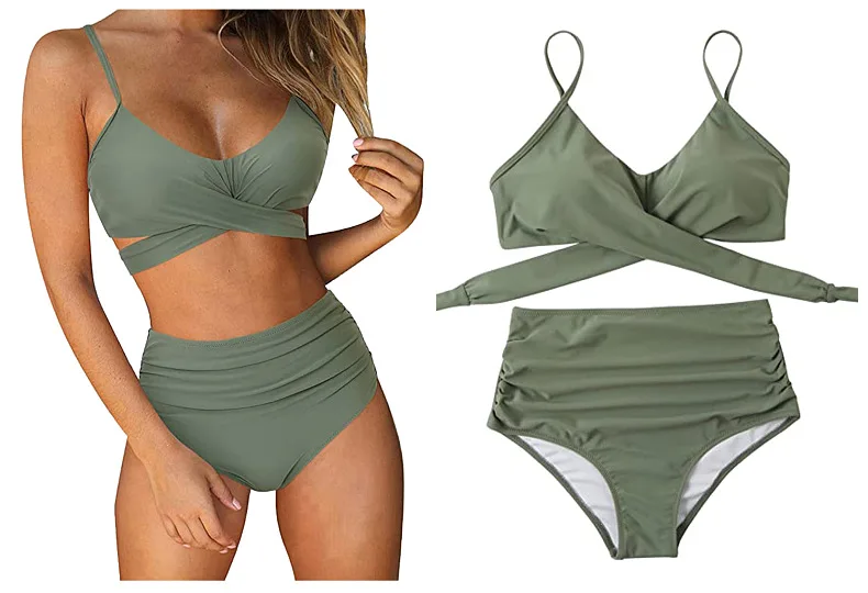 Купальник-бикини женский, однотонный, с эффектом пуш-ап, с высокой талией, 2021