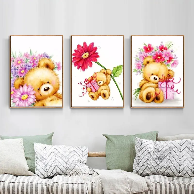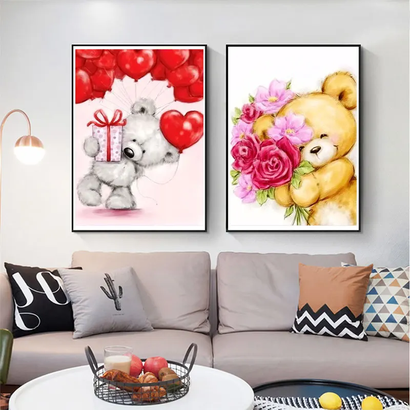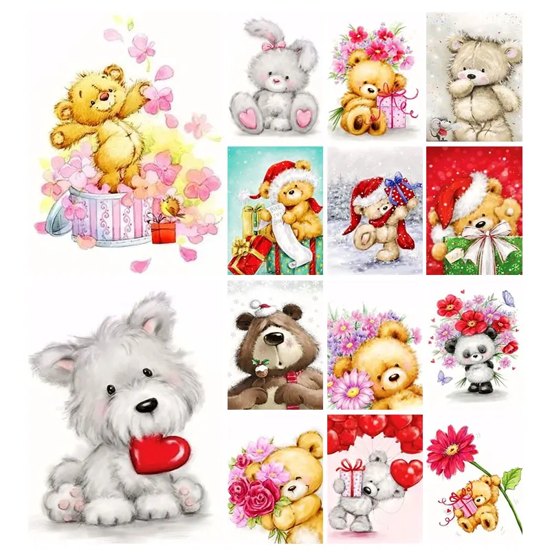 QIQING алмазная живопись, крест, ржавчина, мультяшный кукольный медведь, полноразмерная Круглая Мозаика сделай сам, алмазная шипа, ржавчина, картина, искусство