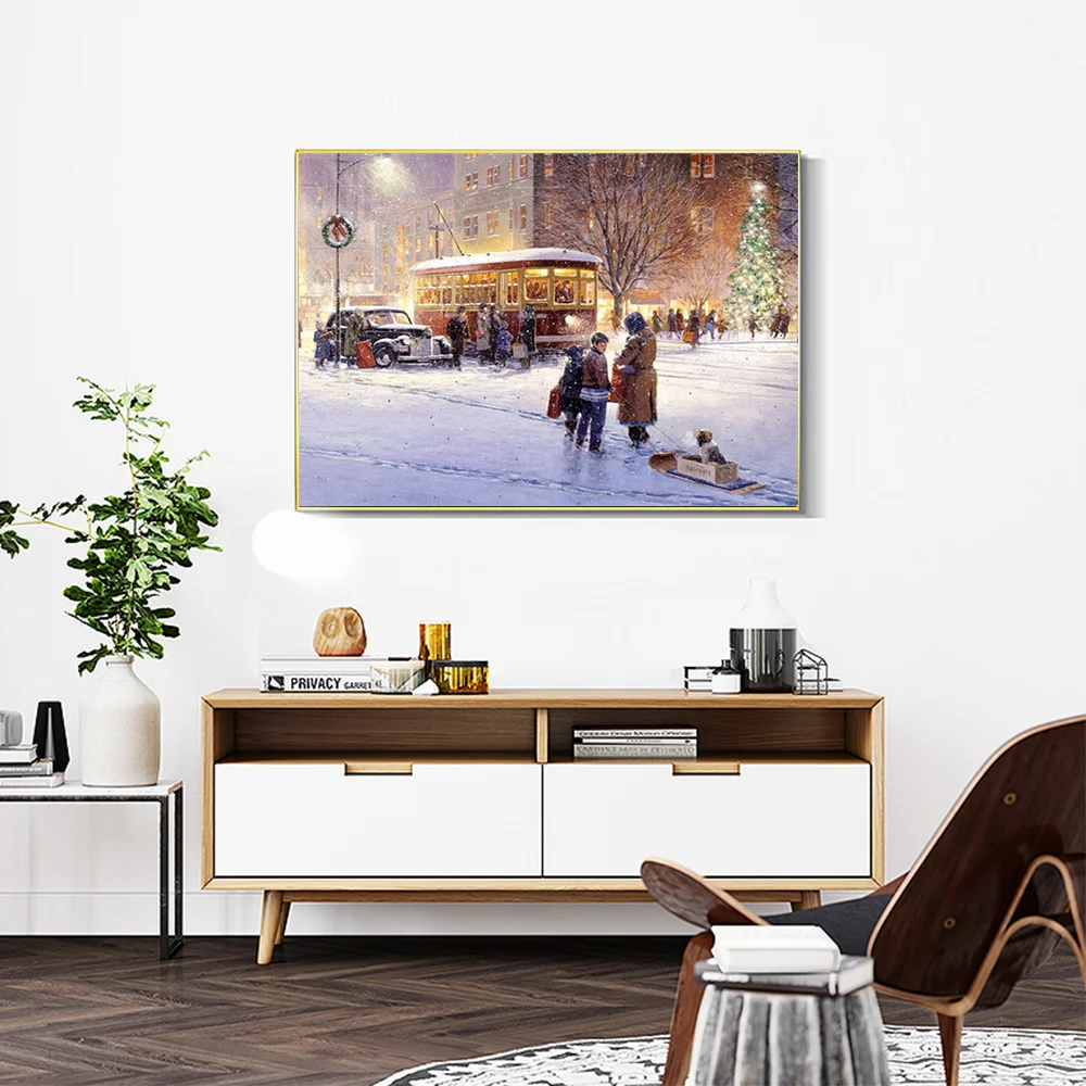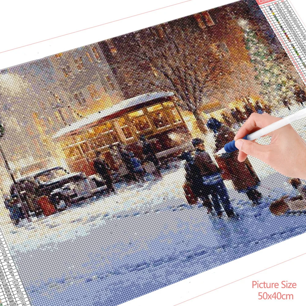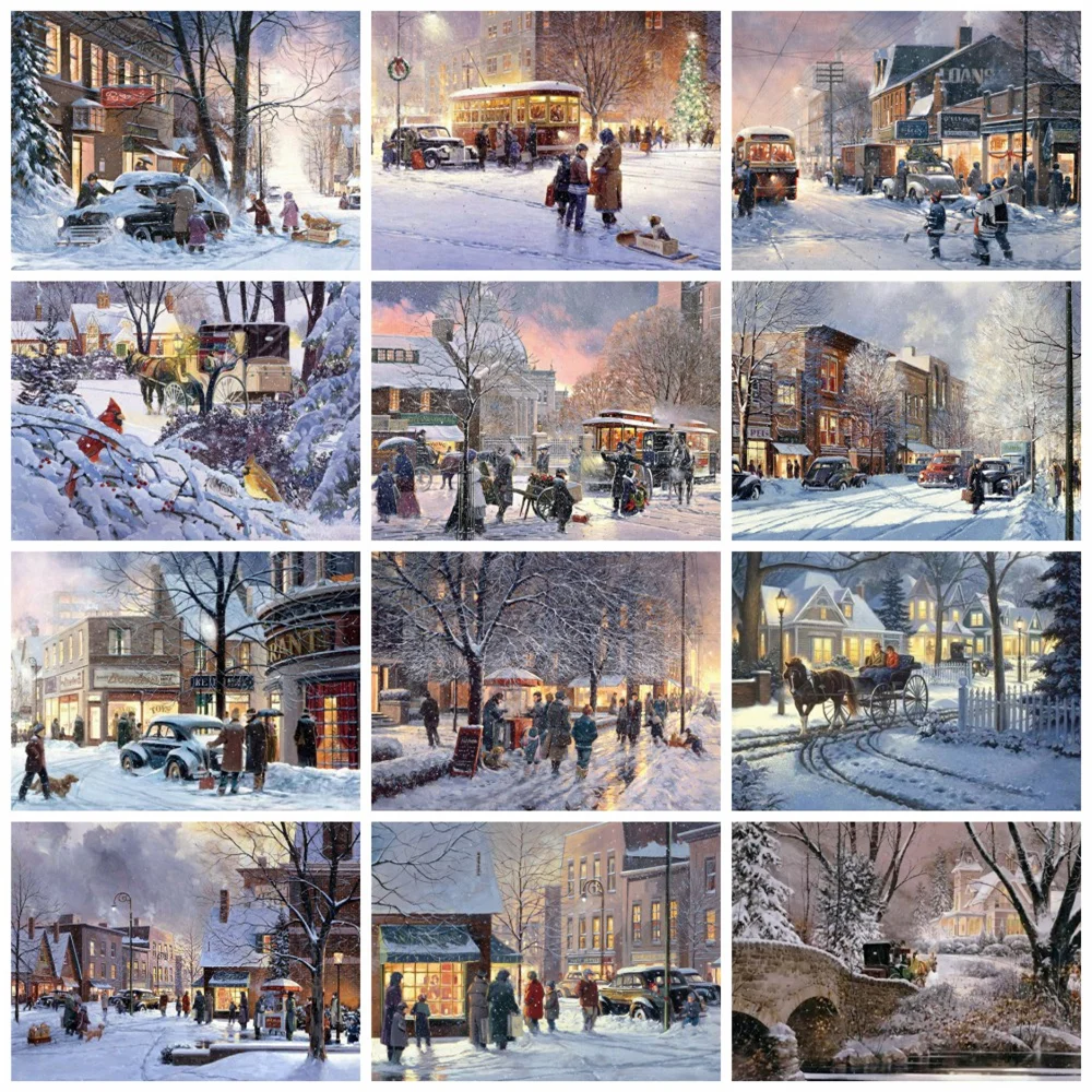 Алмазная живопись 5d HUACAN сделай сам, зимний городской пейзаж, домашний декор, квадратнаякруглая Алмазная вышивка, уличный портрет