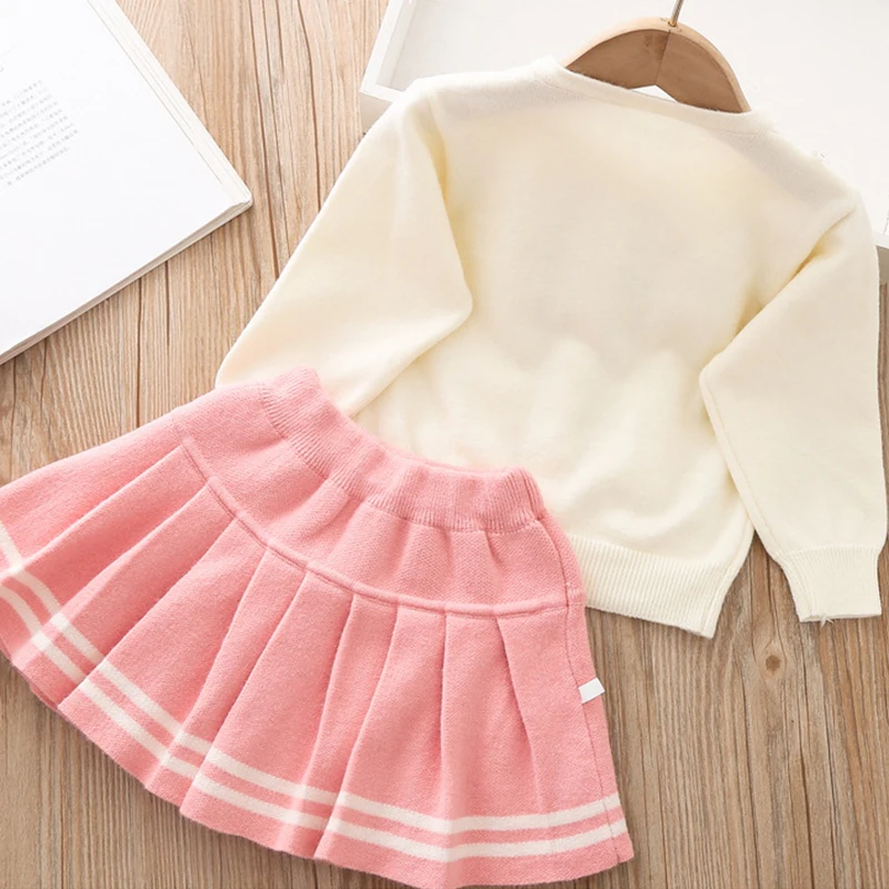 Одежда для маленьких девочек, вязаный свитер, комплект на осеньзиму, милый свитер с бантом для девочек, трикотажная одежда принцессы + плиссированная юбка, комплект из 2 предметов