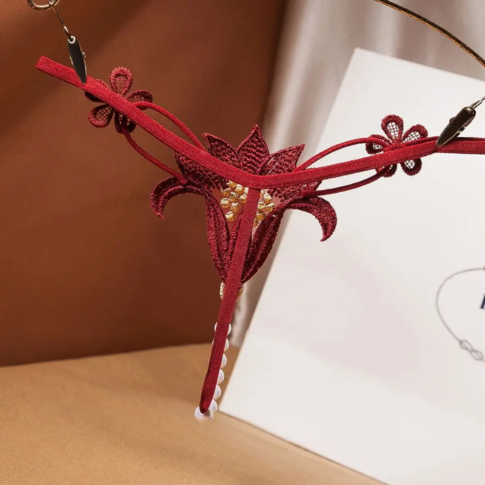 Новинка, женское сексуальное экзотическое нижнее белье, массажные трусики с цветочной вышивкой и жемчугом, ажурное нижнее белье, сексуальные стринги, куклы с открытой промежностью