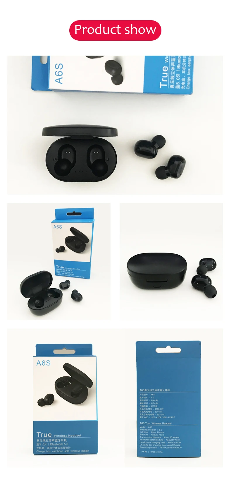TWS-стереонаушники A6S с поддержкой Bluetooth и микрофоном