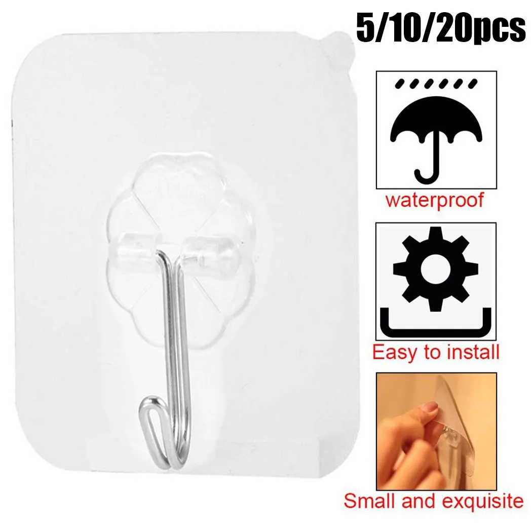 20105 шт., прозрачные крепкие настенные крючки без гвоздей