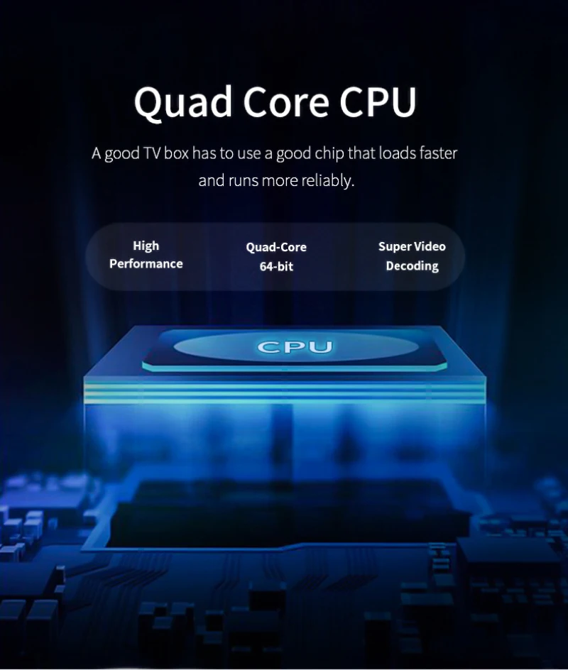 Процессор: для Amlogic S905L до 1,5 ГГц, четырехъядерный процессор ARM Cortex-A53