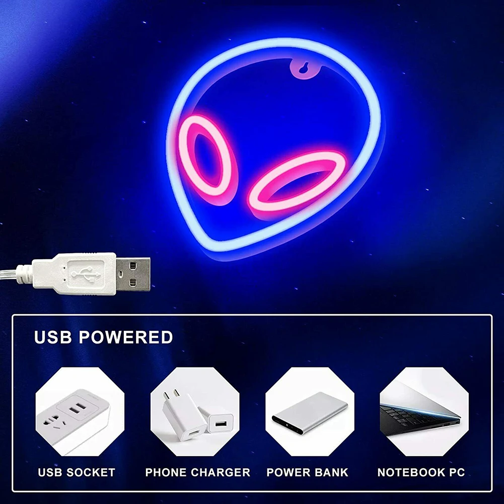 Светодиодный неоновый светильник в форме инопланетянина, настенный светильник для дома, детской комнаты, Saucerman, ночные светильники, Рождественская вечеринка, праздник, художественный Декор