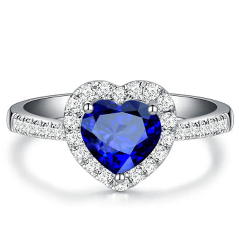 2021 Новое поступление женское кольцо Королевский синий сапфир в форме сердца Популярные обручальные подарки Роскошные ювелирные изделия для женщин оптовая продажа
