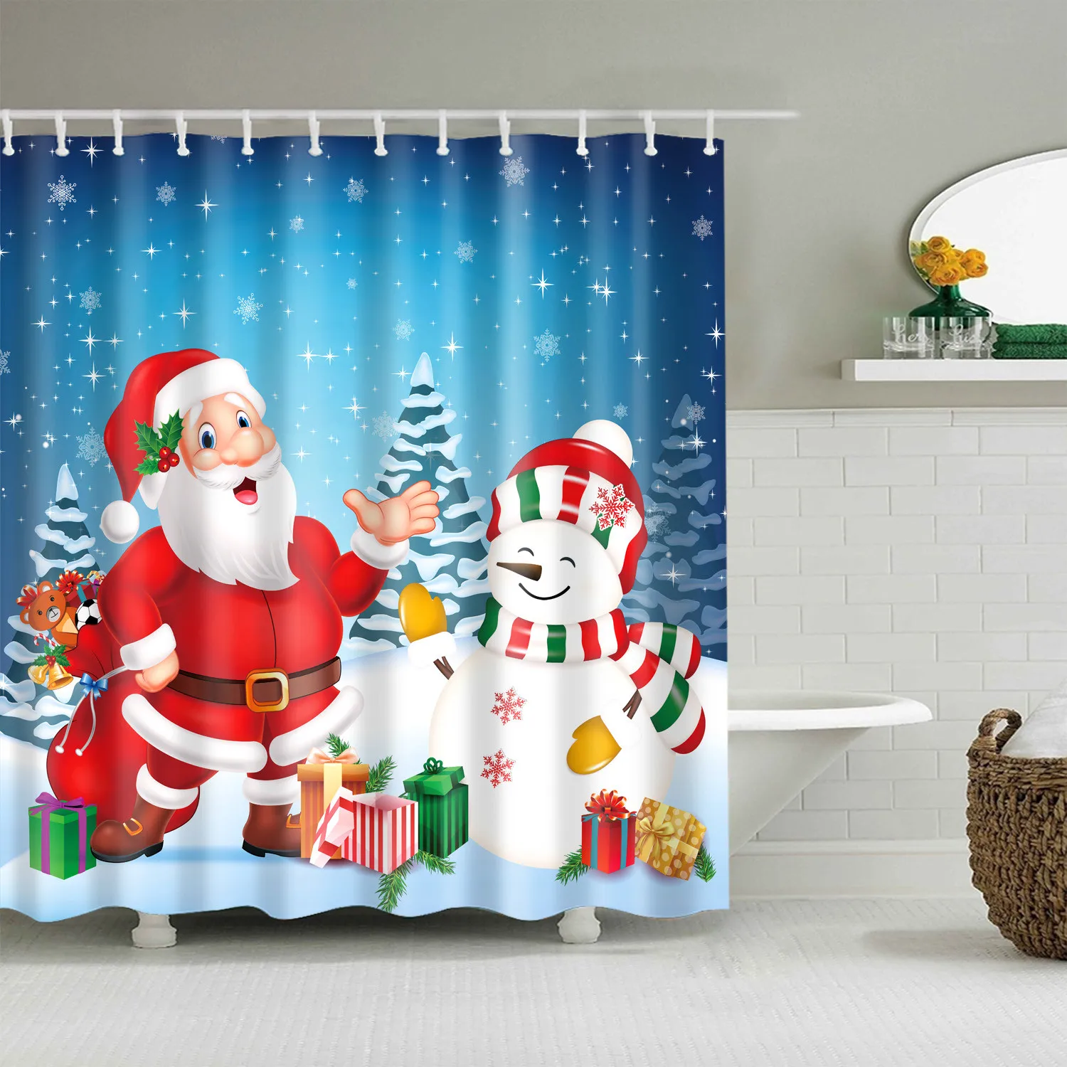 Рождественская занавеска для душа с Санта-Клаусом, занавеска для ванной из водонепроницаемого полиэстера, Рождественская занавеска для ванной с крючками