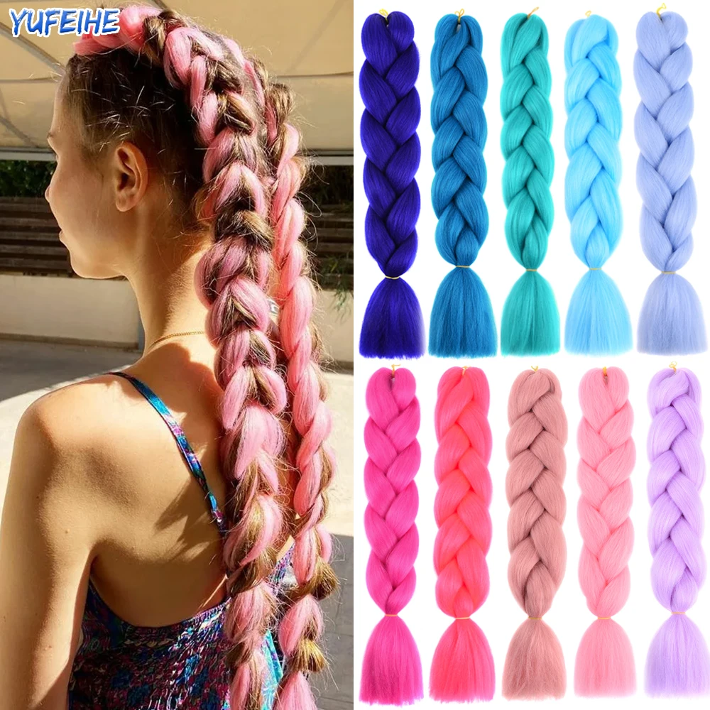 24 дюймовые вязаные крючки, косы для наращивания волос, коробка, твист, предварительно растянутые синтетические плетеные волосы для женщин, детей, Омбре, Джамбо-косы, волосы