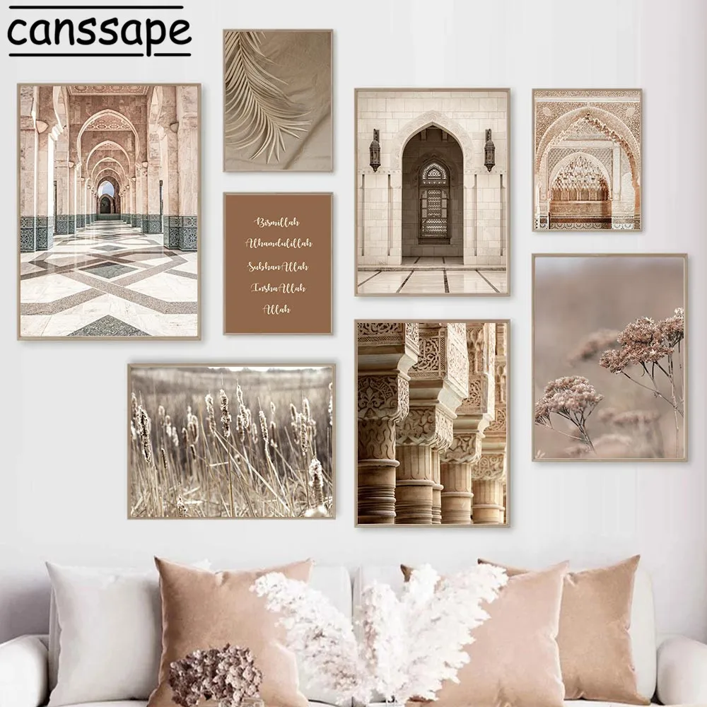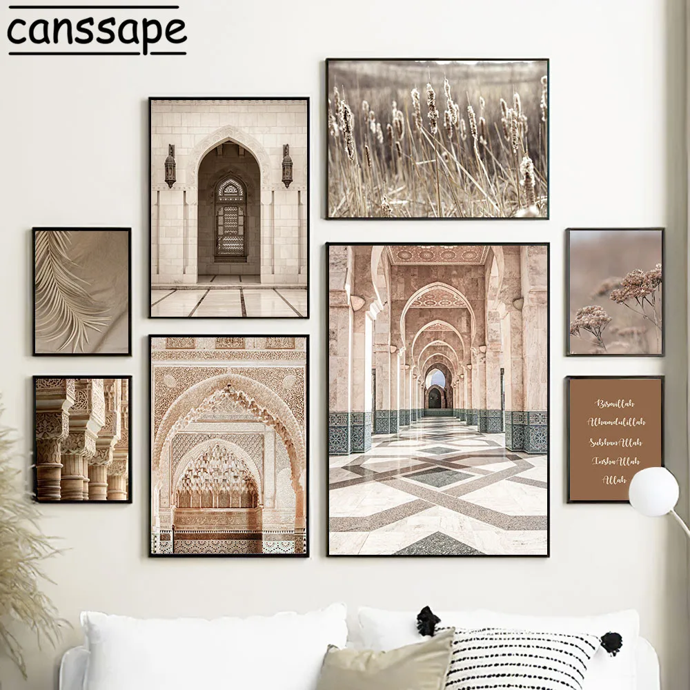 Плакаты и принты в богемном стиле, мусульманская бисмилла, художественный постер, мечеть, марокканская дверь, Картина на холсте, Современная Настенная картина, домашний декор