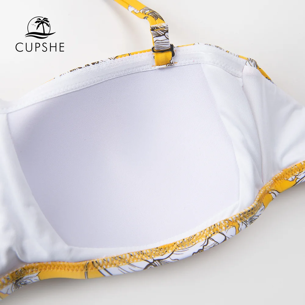 CUPSHE желтый и клементин печати Бикини Набор для женщин сексуальны...