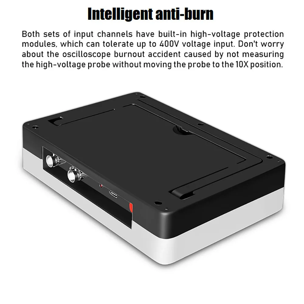 Интеллектуальная защита от ожогов, 1X Выдерживает напряжение до 400 В.100 МГц аналоговая полоса пропускания @ 1GSa/s частота дискретизации(1X = 5 МГц,10X = 100 МГц).Полностью подходит для 7 дюймов 800x480 цветной TFT LCD с яркими цветами и высокой контрастностью.Емкостный сенсорный экран, такой же, как и Сенсорный режим современного мобильного телефона для iPad, не является резистивным сенсорным экраном с древней операцией ногтей.Диапазон высокого измерения напряжения, 1X может измерять 0 ~ 40 В, 10X может измерять 0 ~ 400 В,100X может измерять 0 ~ 4000 в.