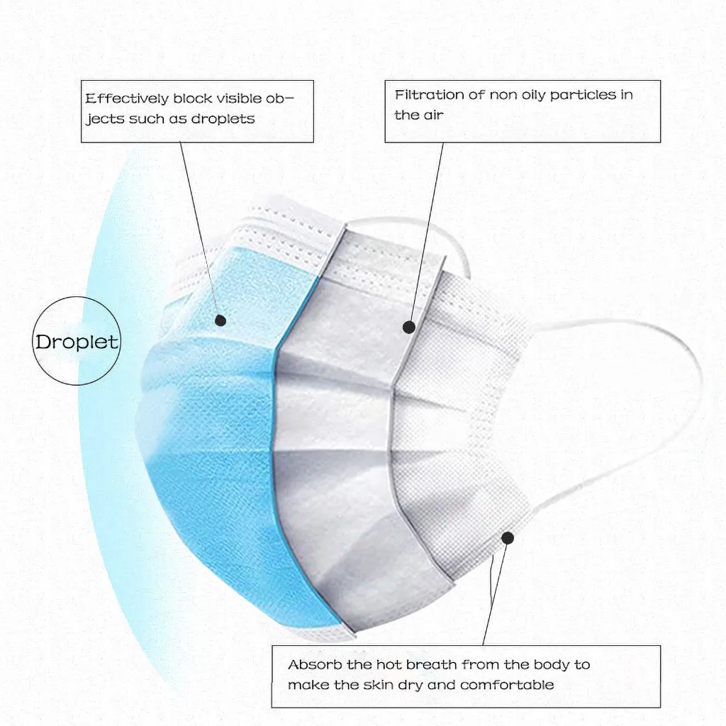 Маска для лица одноразовая трехслойная, Пылезащитная, ветрозащитная...
