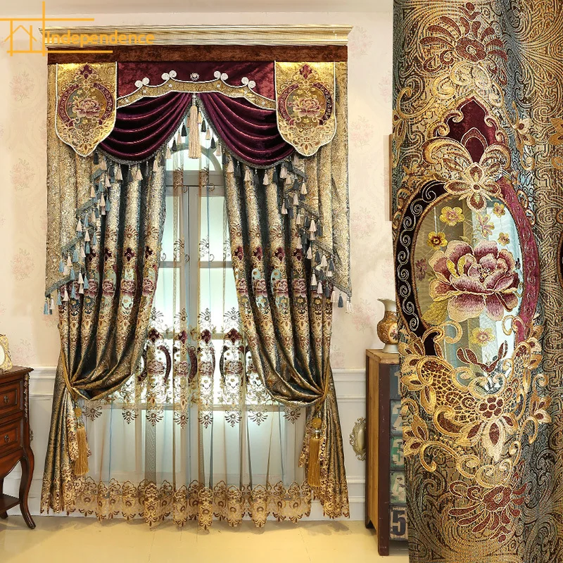 Шторы на окна в европейском ретро-стиле с вышивкой из шенили