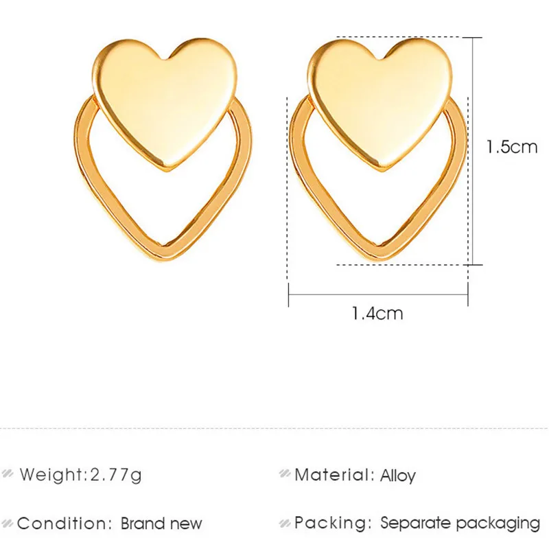Двойные серьги-гвоздики в форме сердца для женщин и девушек, просты...