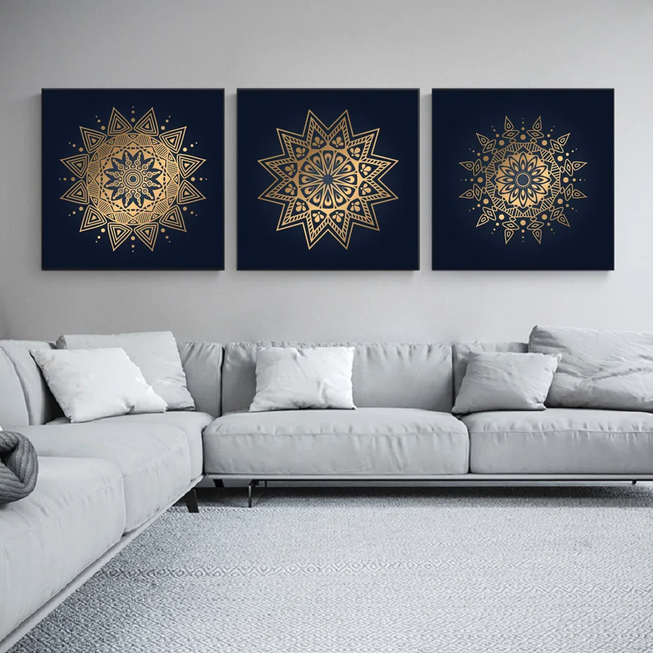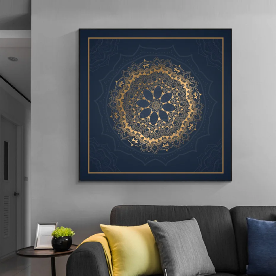 Золотая круглая Мандала в стиле ретро с черной границей, Круглый Декоративный постер в стиле ретро, настенное украшение для спальни, гостиной, дома