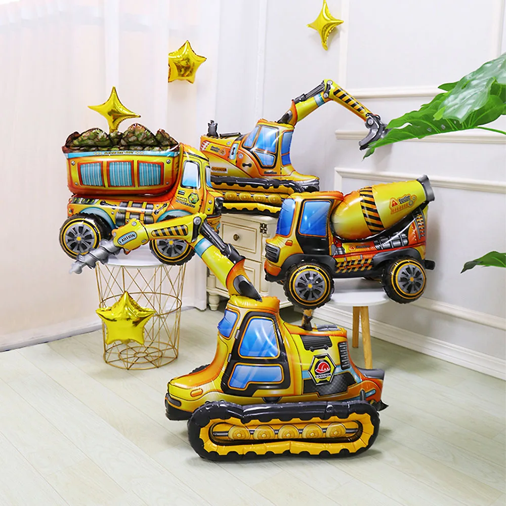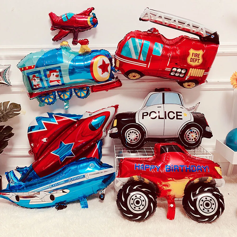 Мультяшный стиль, пожарная машина, поезд, самолет, экскаватор, автомобиль, алюминиевая пленка, воздушный шар, украшения для дня рождения вечерние детский подарок