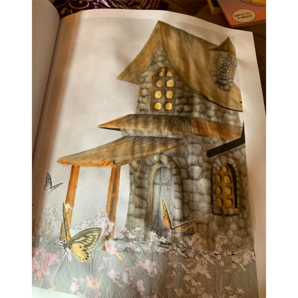 Книга пришла быстро, но я не обратила внимания, что это не оригинал, а китайская перепечатка. книга на склейке, качество склейки довольно грубое, скорее всего листы со временем развалятся при активном раскрашивании. Листы тонкие, но плотные, не чисто белые, с лёгким желтоватым подтоном. Призмы ложатся нормально. Сами домики очень симпатичные. Размер книги 17,5*25 см. Всего 25 домиков.