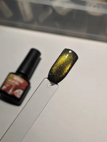 Гель лак огонь!!!!! Один из лучших. Жаль, что не наливают в большой объем, я бы с удовольствием купила. Есть светоотражающие частички, но их немного. Как раз оттенить красоту блика кошки. Отправка быстрая, доставка в Киев 2.5 недели. Остальные цвета заказала одновременно у другого продавца - до сих пор где-то ездят. Этот магазин и товар рекомендую!!