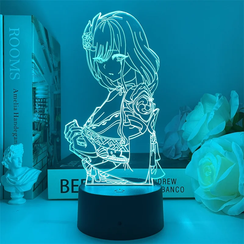 Genshin Impact Raiden Shogun ночсветильник 3D USB светодиодный игровой персонаж Модель светильник s Детский подарок на день рождения украшение для спальни светильник