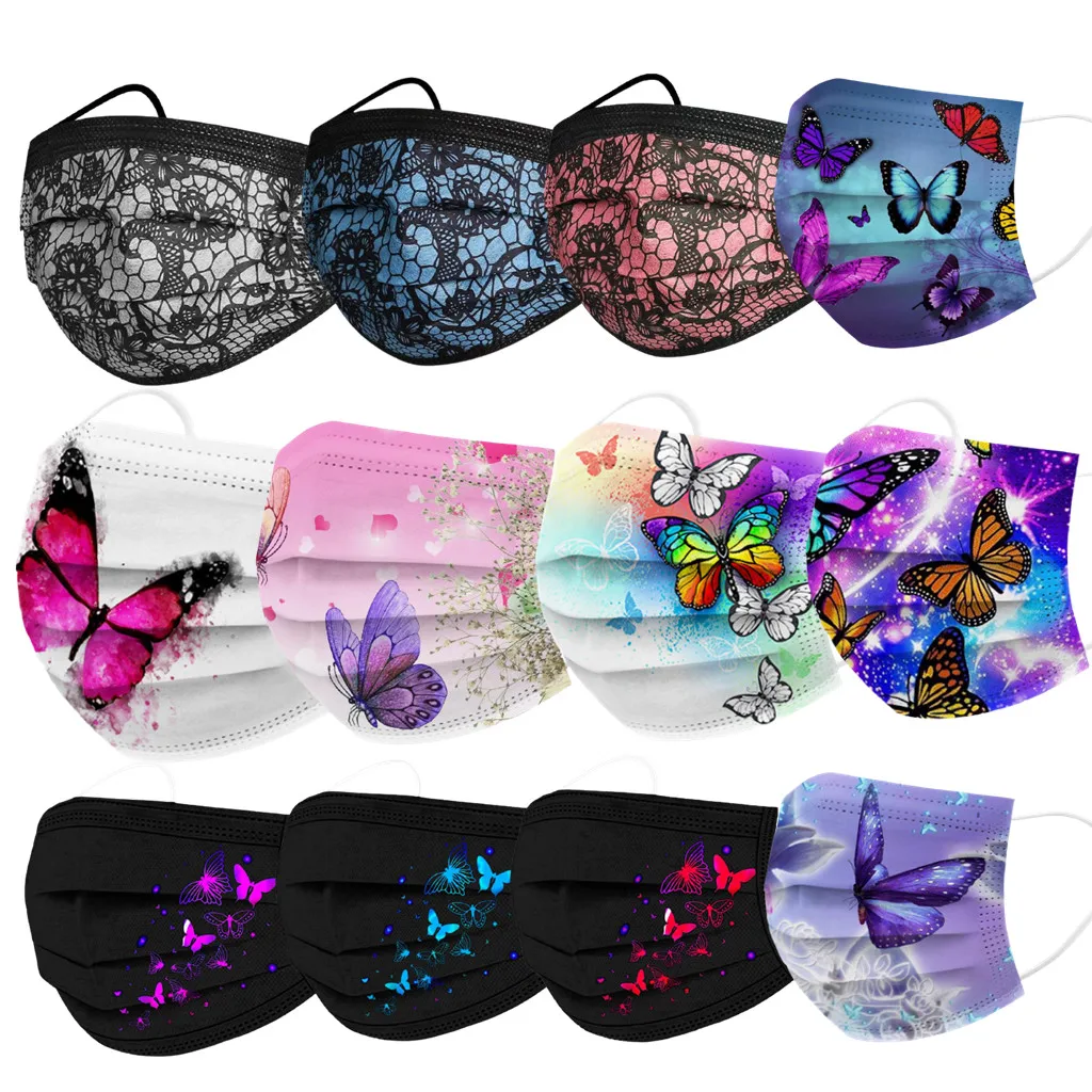 10 шт., одноразовые маски для лица для взрослых, с принтом бабочек