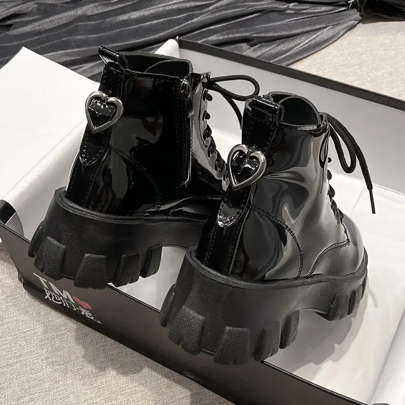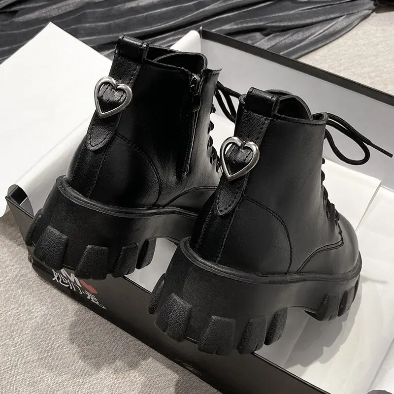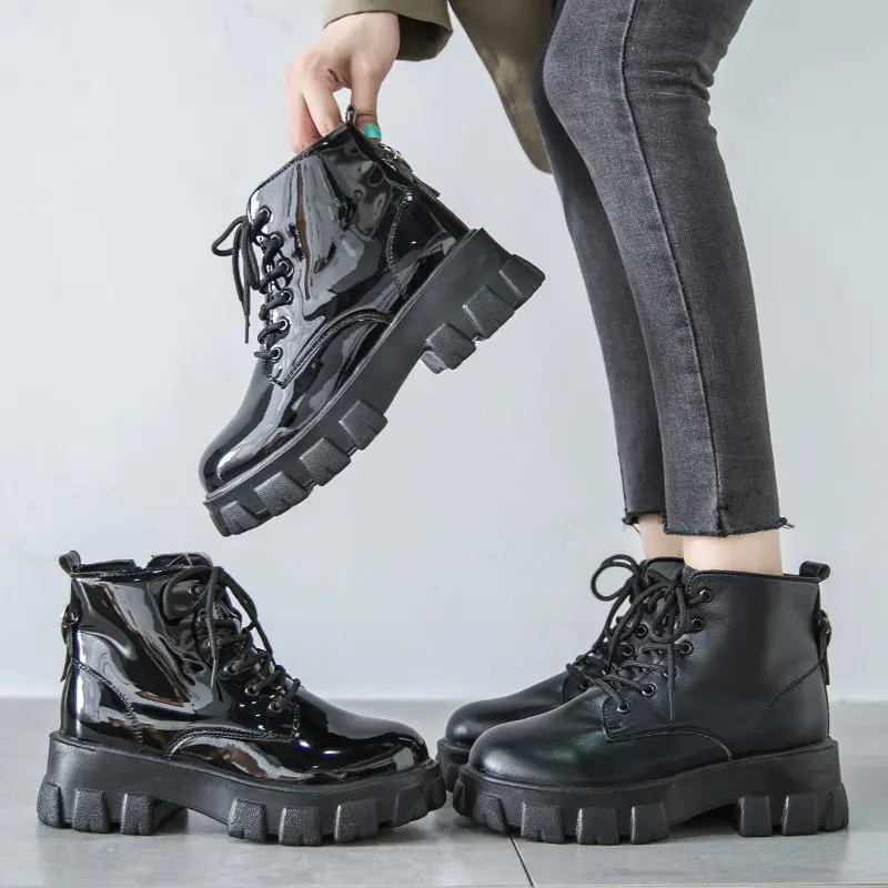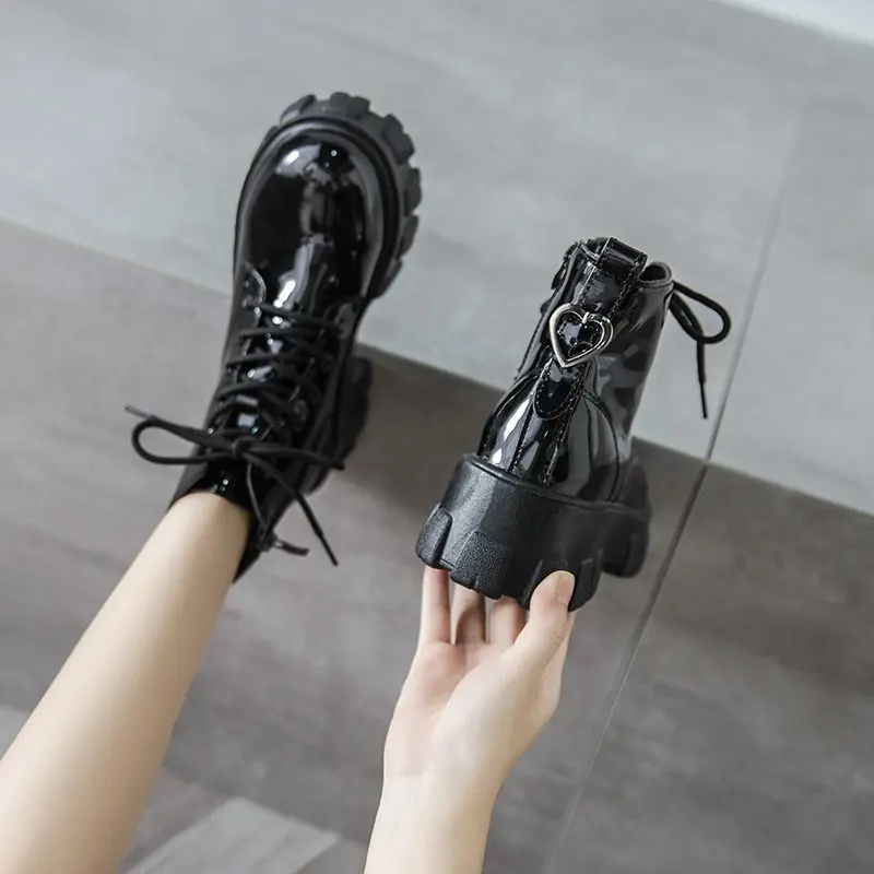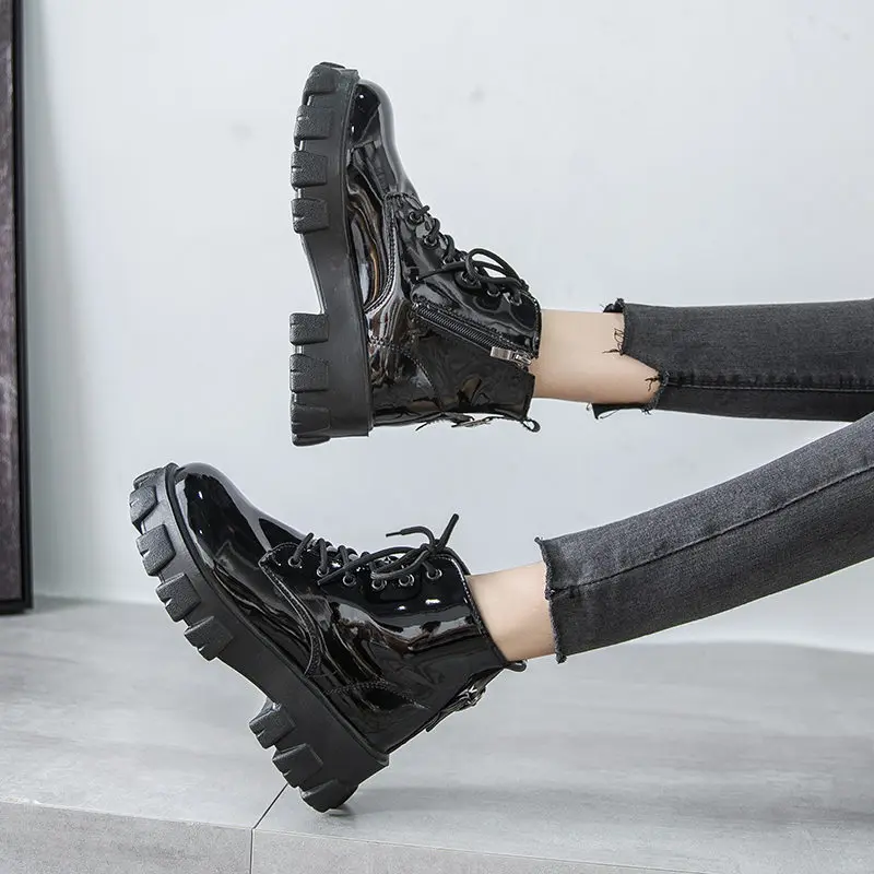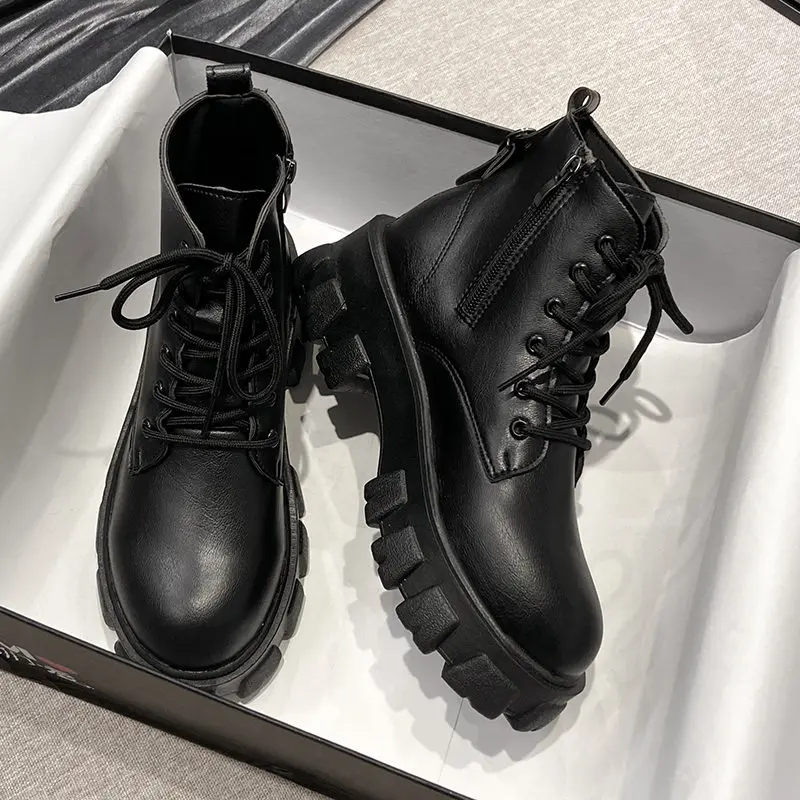 Зимние женские ботильоны, черные кожаные, коллекция 2022 года, модные, Осенние, теплые, мотоциклетные, Нескользящие, водонепроницаемые женские ботинки на платформе