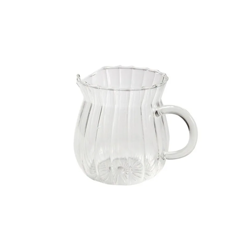 Японский стеклянный молочный кувшин в полоску с ручкой, термостойка...