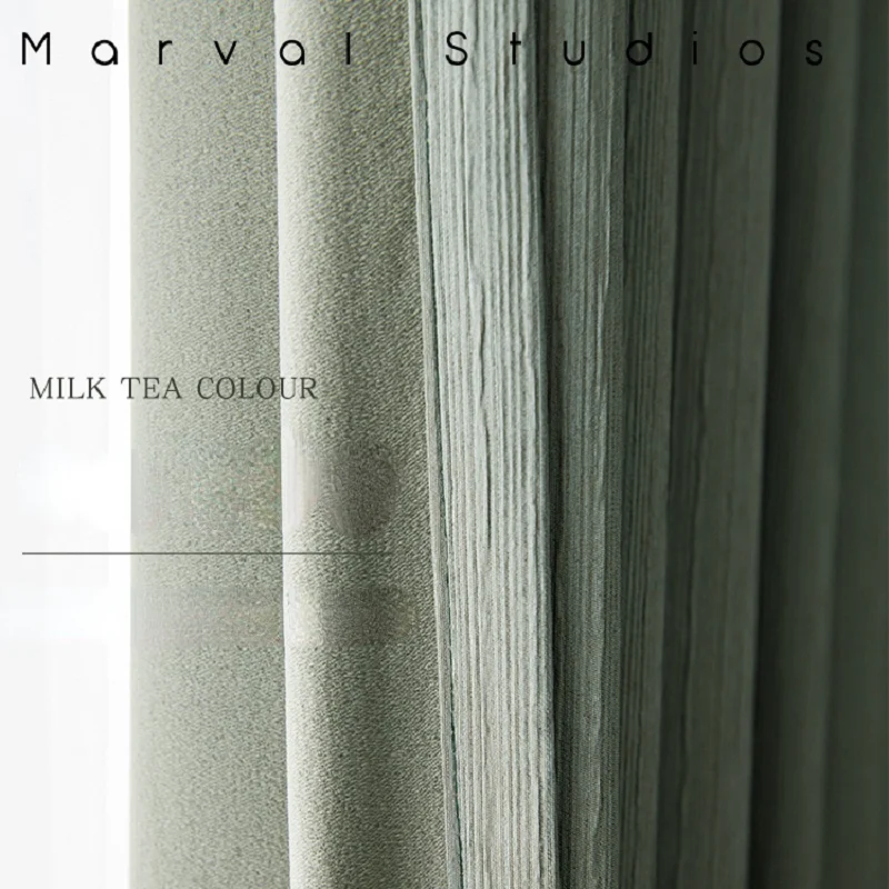 Гардина в японском стиле с затеняющей текстурой, скандинавский зеле...