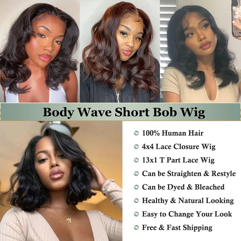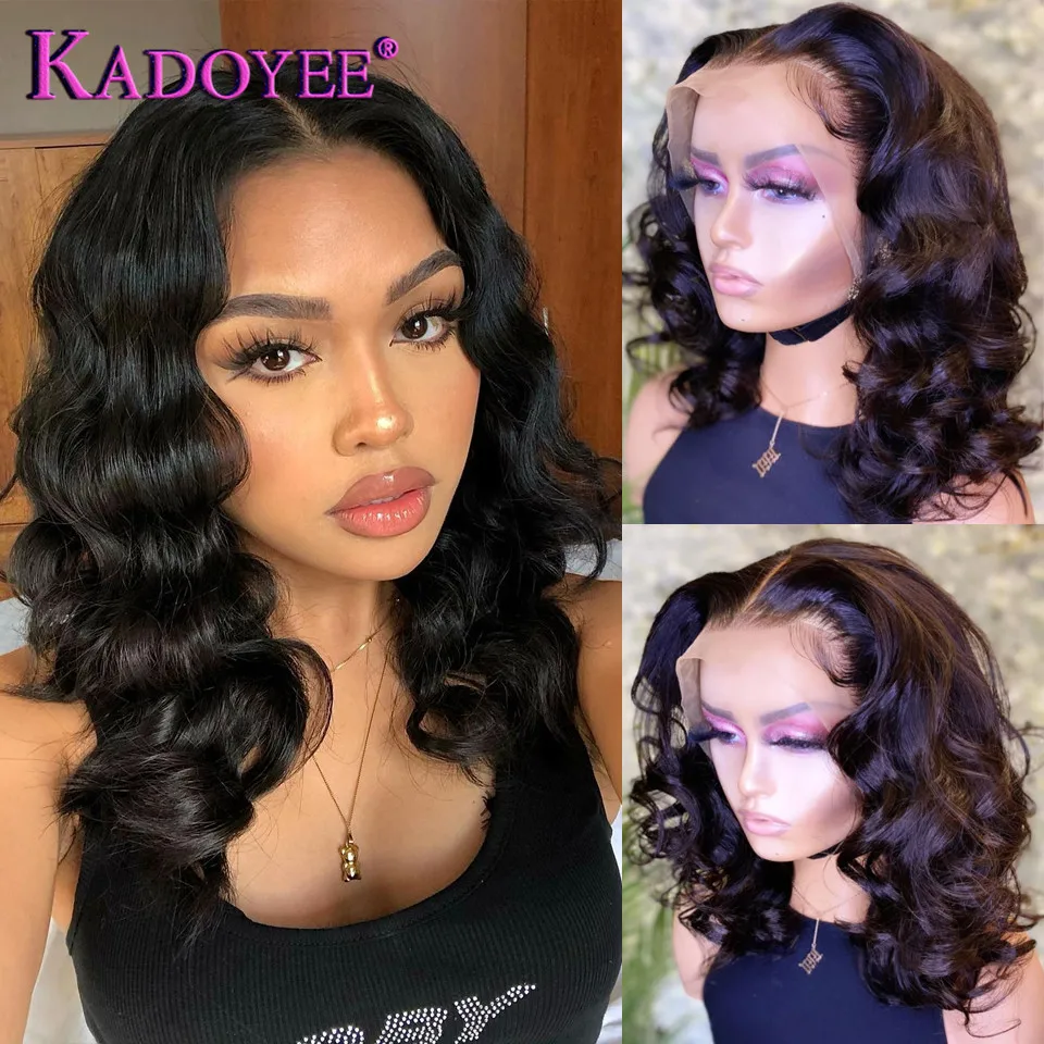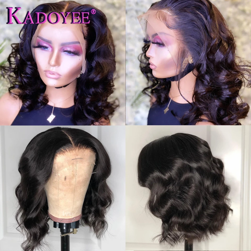 Бразильские свободные волнистые парики из натуральных волос на шнурках для женщин, короткий волнистый парик с Бобом, 4x4, парик на шнурках, предварительно выщипанный 13X1 парик Remy