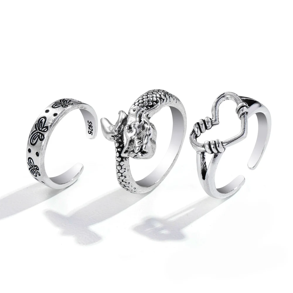 Кольцо женское в стиле панк, со змеей, бабочкой и сердцем