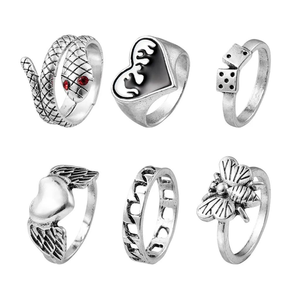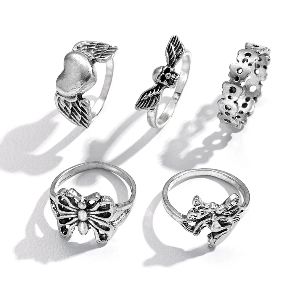 KISSWIFE Панк Винтаж Серебряный Цвет Крылья Ангела Сердце Кольца На...