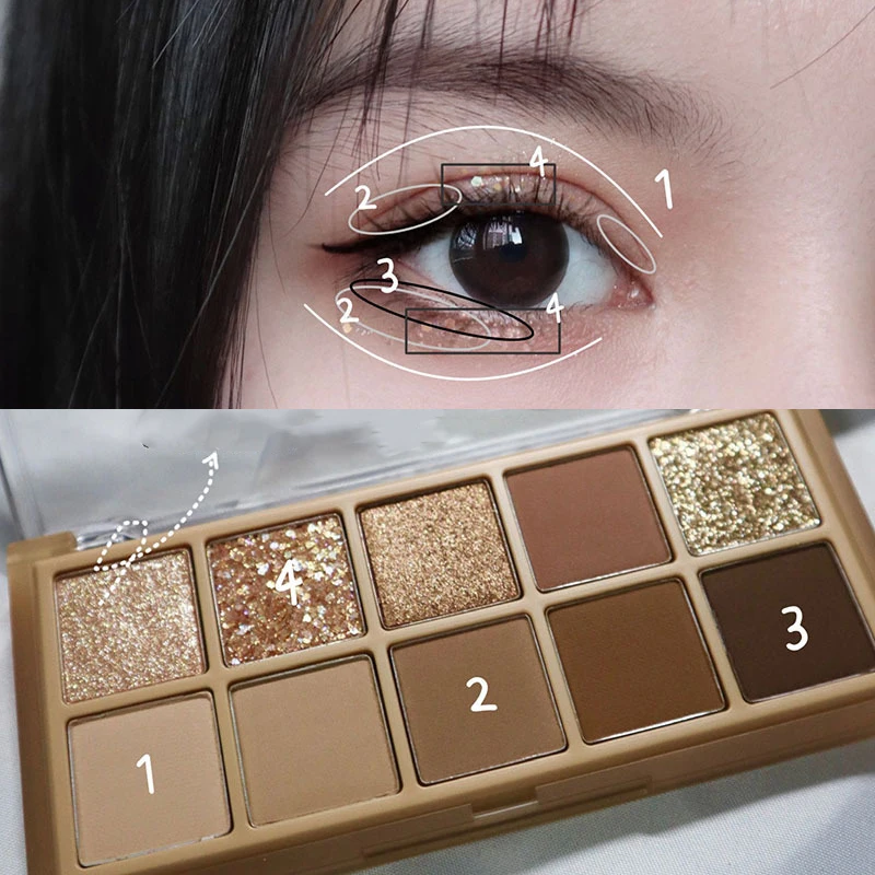 Палитра теней для век, 10 цветов, тени для макияжа, палитра, блестя...