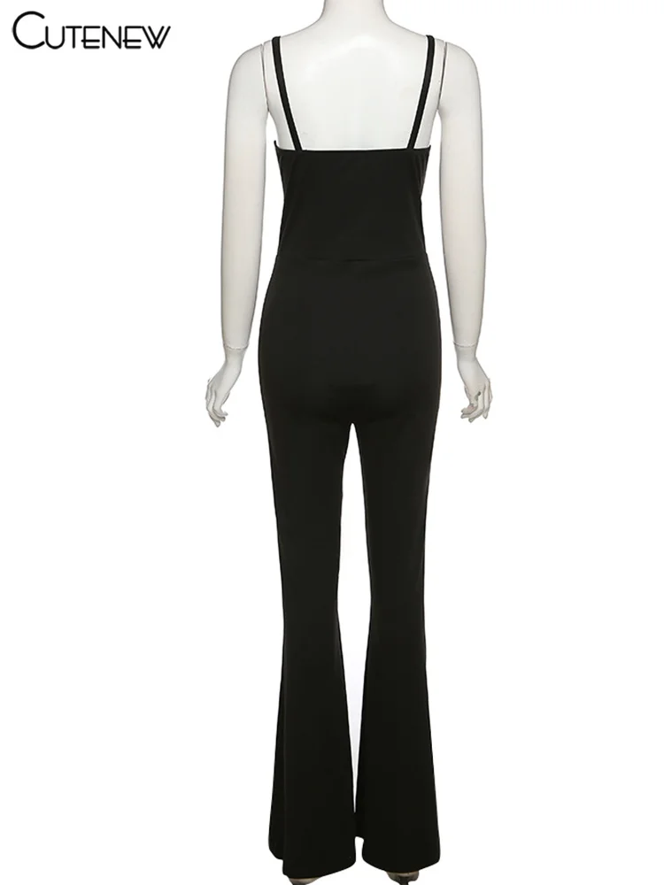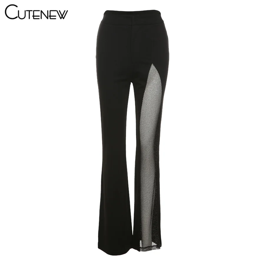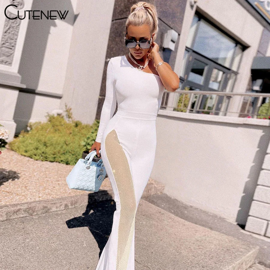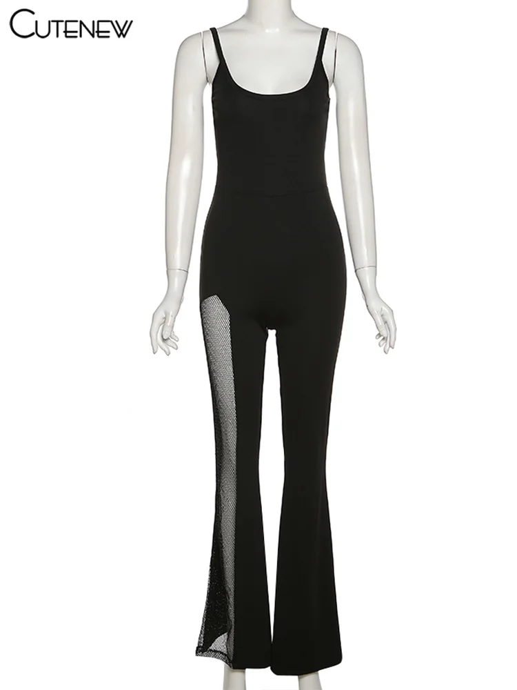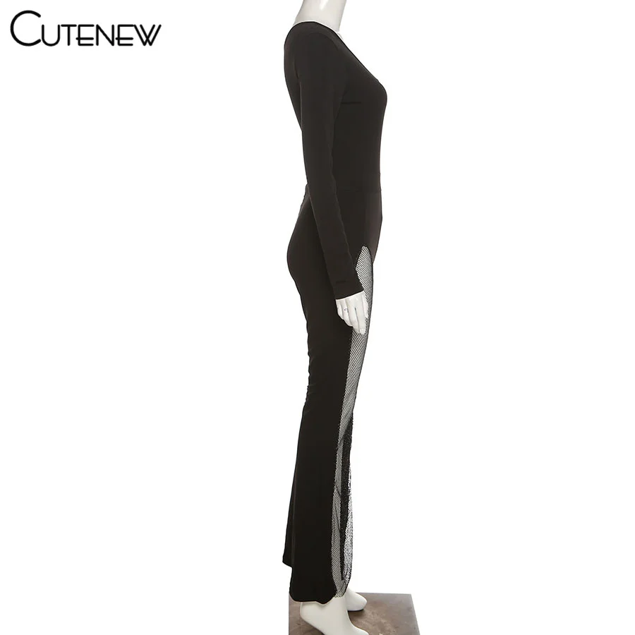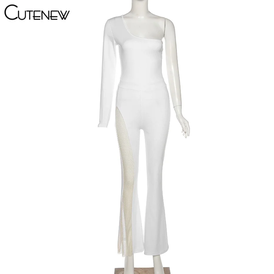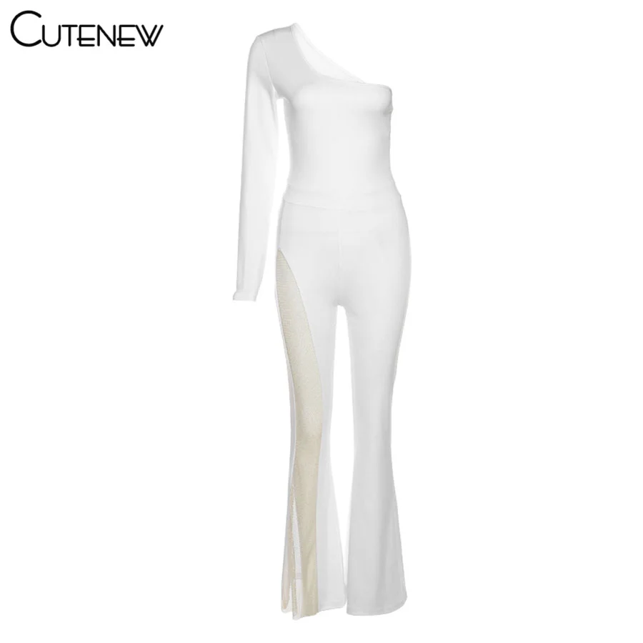Комбинезон Cutenew женский сетчатый на одно плечо, пикантный элегантный однотонный облегающий ромпер с расклешенными брюками, модная уличная одежда для вечеринок