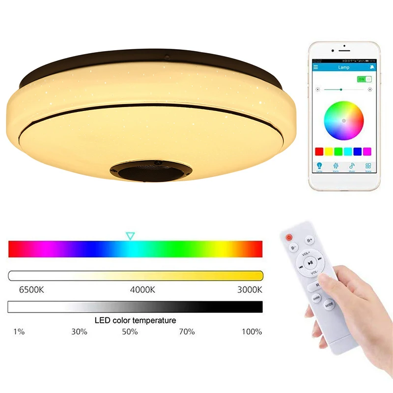 Светильник потолочный светодиодный, 300 Вт, с приложением и динамик...